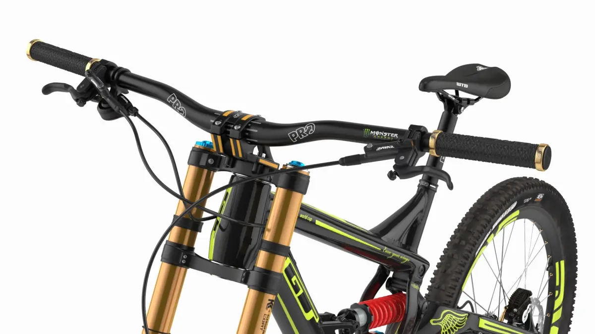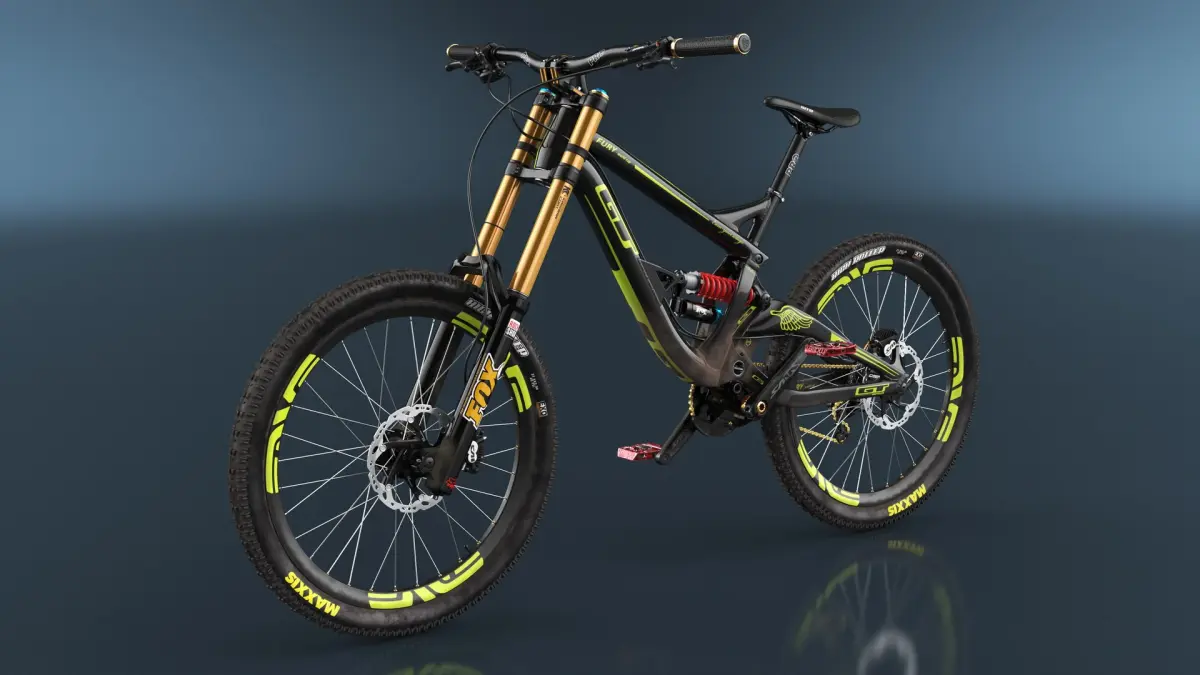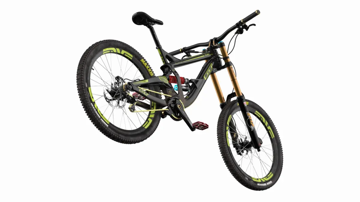 GT Fury Downhill Mountain Bike Rigged for Maya is a three-dimensional model of high-performance downhill mountain bike designed for extreme off-road terrain and competitive racing, used to handle rugged terrains with precision and comfort.