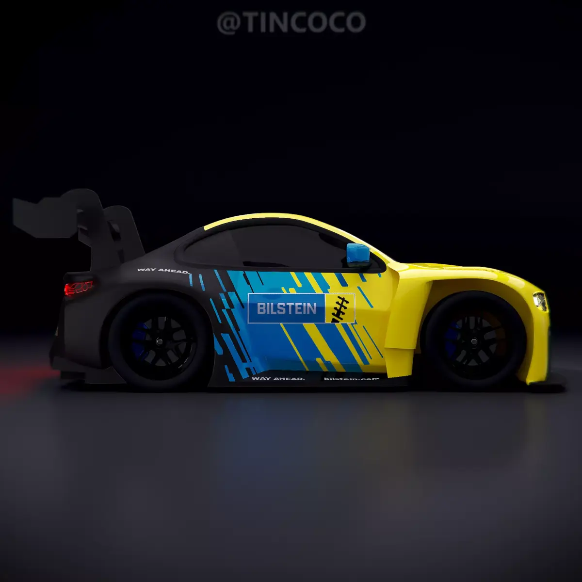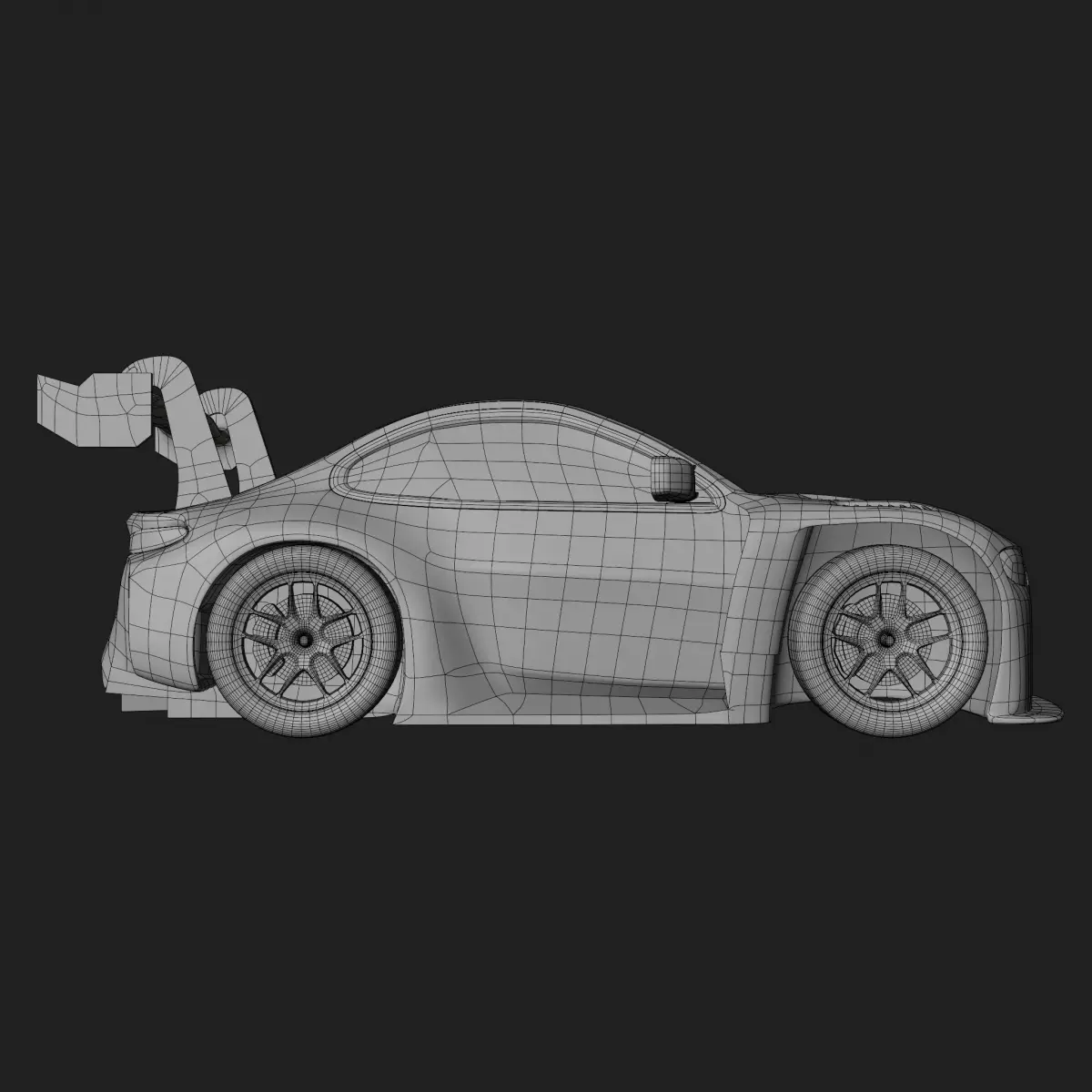 Fan made GT3 car but with a shorter wheelbase and simplified details. Model is not rigged. It is fully textured and UV unwrapped. Any overlapping uv's are used for parts that have no detail needed. Car body has 5,286 faces (10,476 tris), and ONE wheel has 922 faces (1,892 tris) before subdivision. Tires are seperate from the body mesh. The car also has no interior. Also uses cycles for the main renderer. You can likely use Eevee but anything clear like the windows and lights might not look the same without any tweaks.