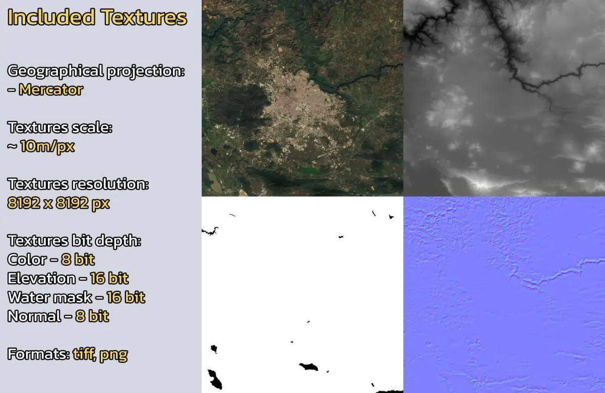 Warning: minor clouds/artifacts may be present on the diffuse color satellite texture due to the nature of the dataset. Check product images.