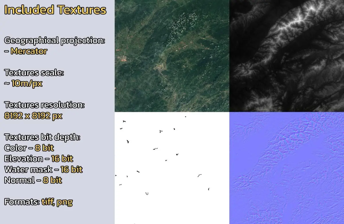 - Textures resolution: ~10m/px