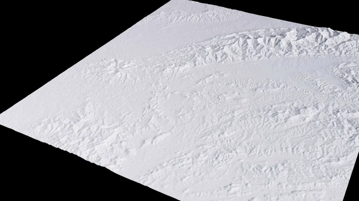 Originally created in Houdini 19. Final images rendered in Houdini. Data source is ASTER GDEM V3, ASTER WATER V1, Open Streep Maps 2022, Copernicus Sentinel 2016.