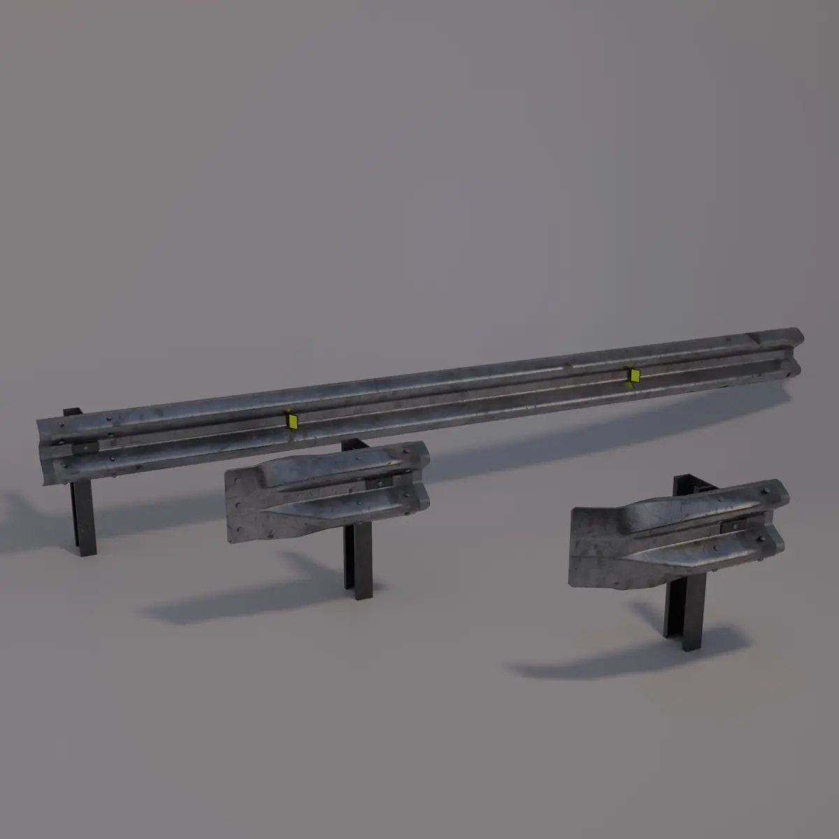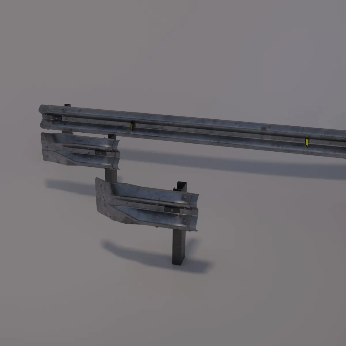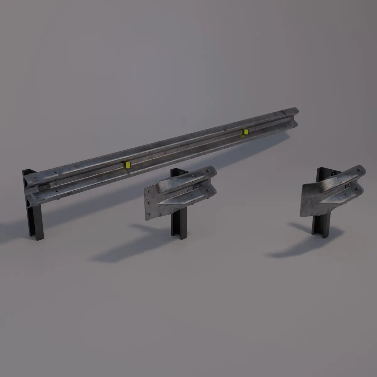 These three pieces of guardraial can be inverted on the X and Y axes to compose a stretch of highway, the posts are the markings where the other pieces are connected and for a correct fit the displacement between the posts must be 4000 mm