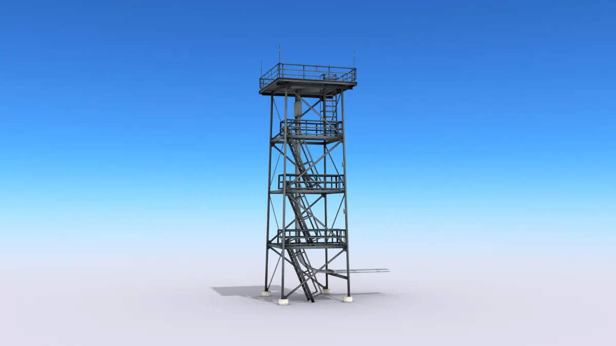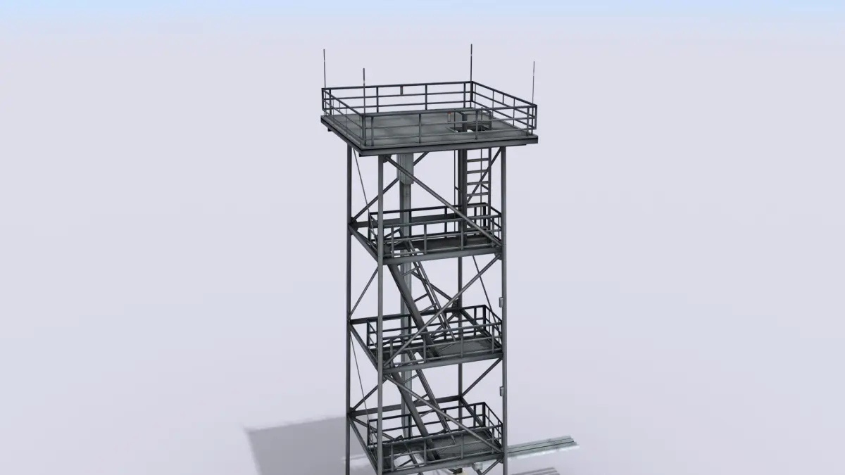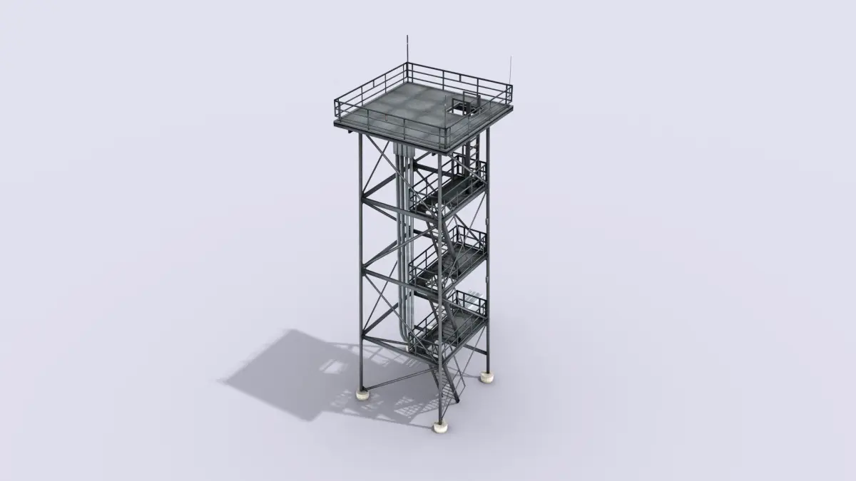 High-quality low-poly 3D model of Guard Tower with some connection pipes.