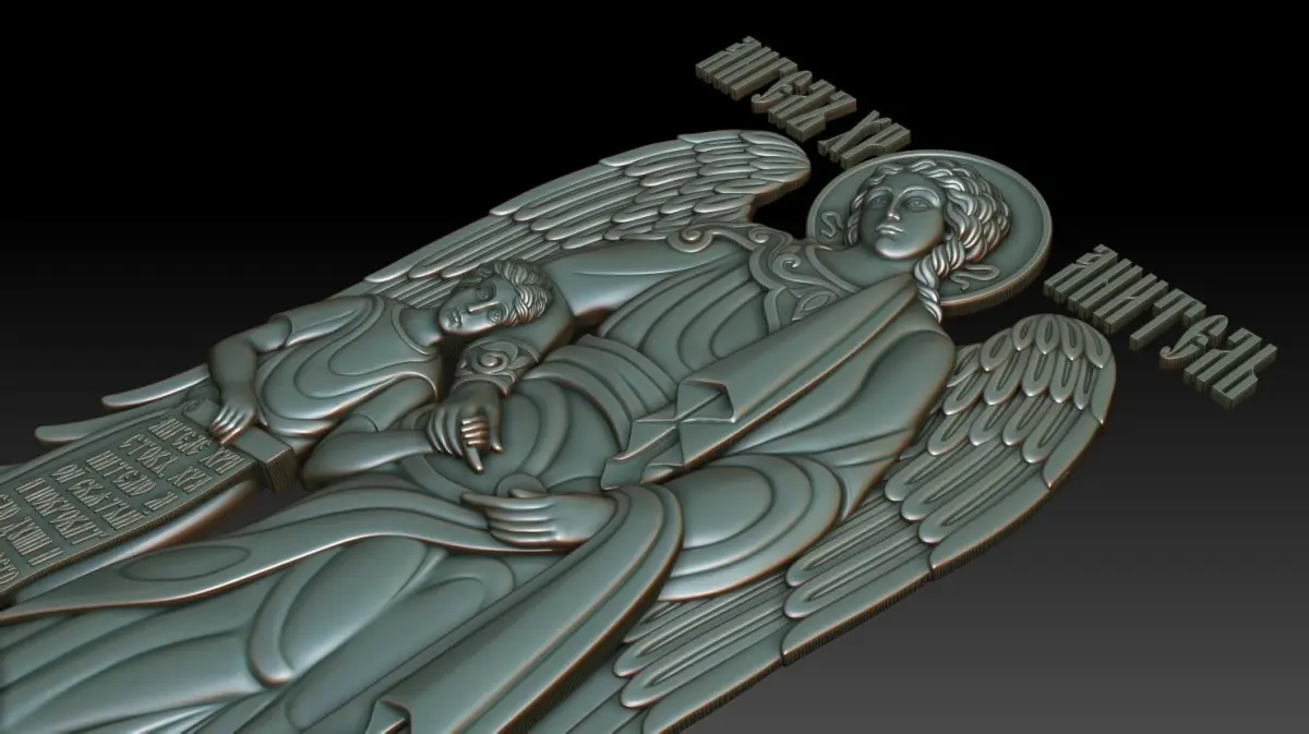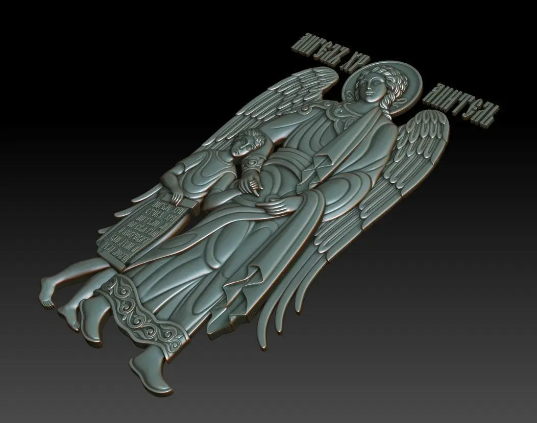 3d model Guardian angel orthodox icon. For milling on CNC machines. Can be used in the production of souvenirs, furniture, jewelry. Files in stl format, for import to artcam, rhinoceros, 3ds max, etc. You can scale the model to any size you need.