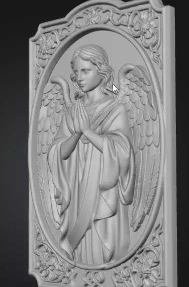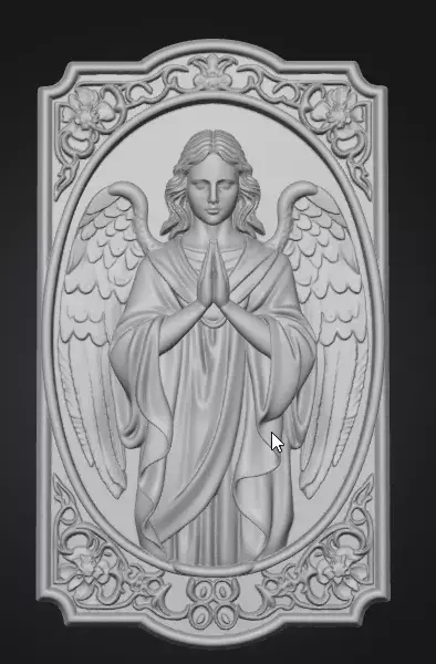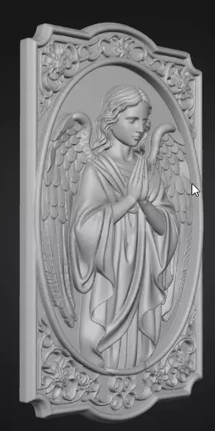 The angel figure is sculpted in a symbolic and stylized manner rather than strict realism making it suitable for decorative jewelry and commercial useThe surrounding ornamental frame adds visual depth reinforces structural integrity and protects fine relief details during production