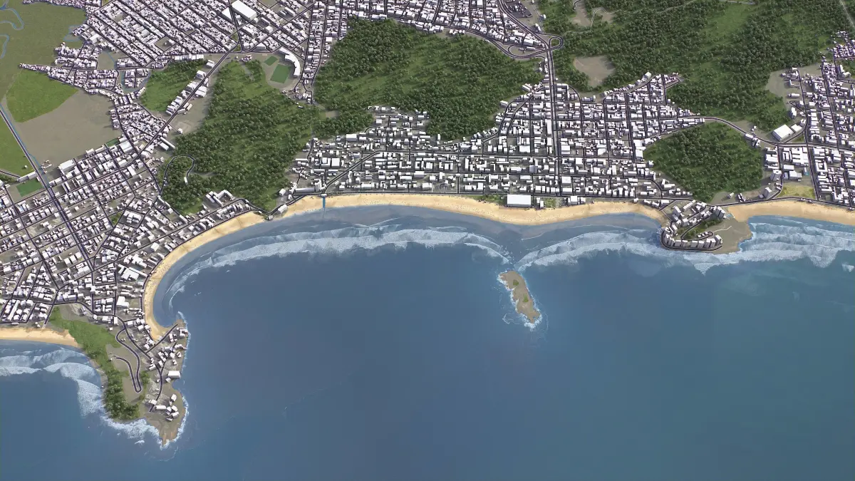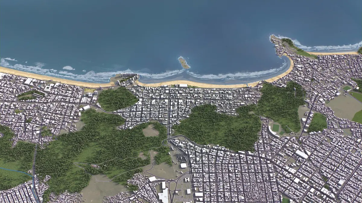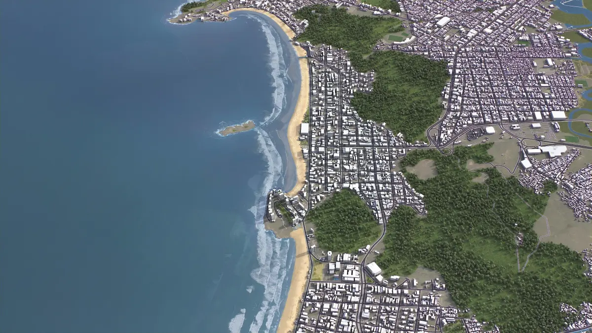 - Full city extents up to 100 x 100 km — or crop to an area of interest for better format compability and scene performance