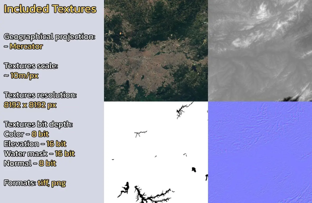 - Textures resolution: ~10m/px