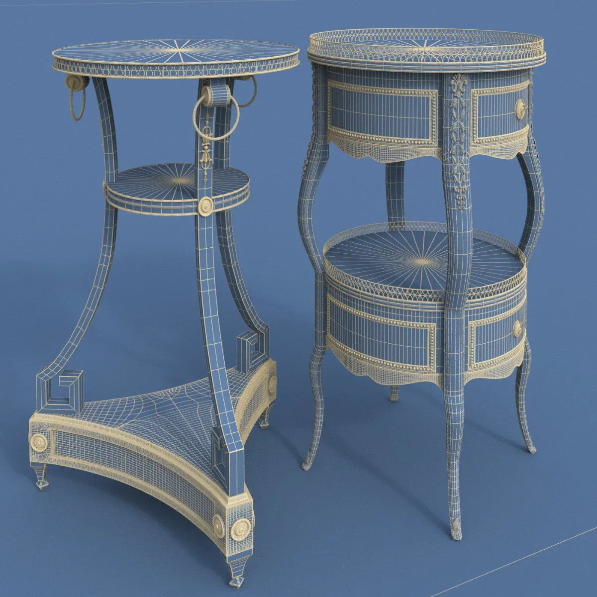 3da Max, Corona. In zip: max, obj, fbx, textures.3d reconstruction of historical furniture - 2 huridons (attached tables, pedestals):