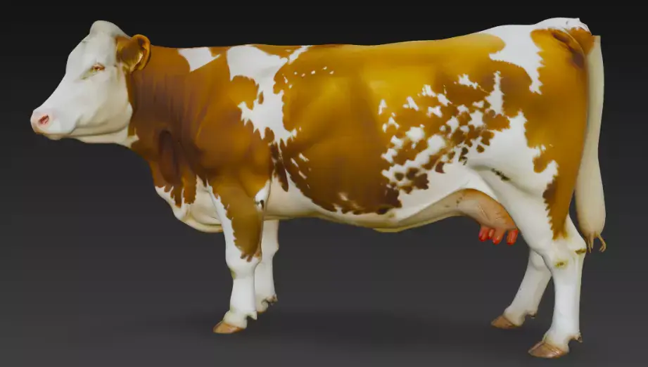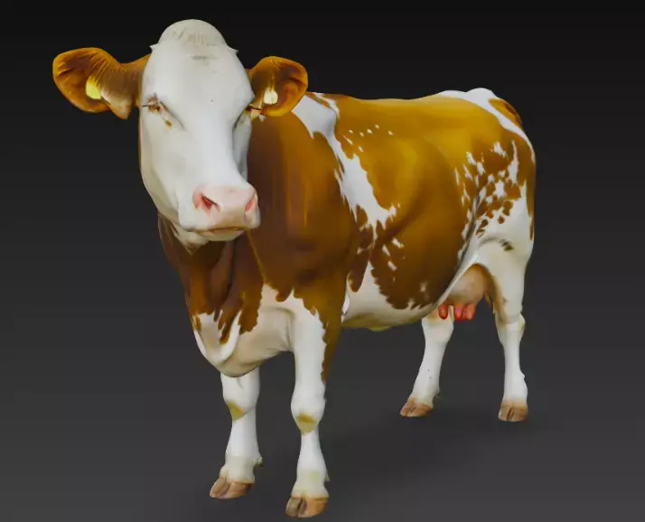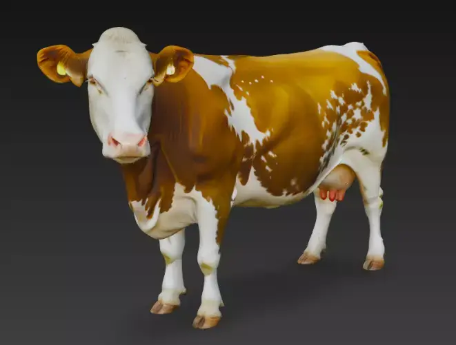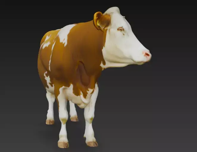 This meticulously crafted 3D model showcases an Angus cow standing with a solid black coat, highlighting its muscular build and subtle white markings on the muzzle. The model features a smooth texture and realistic proportions, making it ideal for virtual farm environments, educational tools, or livestock simulations. The detailed design captures the cow's sturdy legs and robust frame, perfect for digital rendering or animation projects.