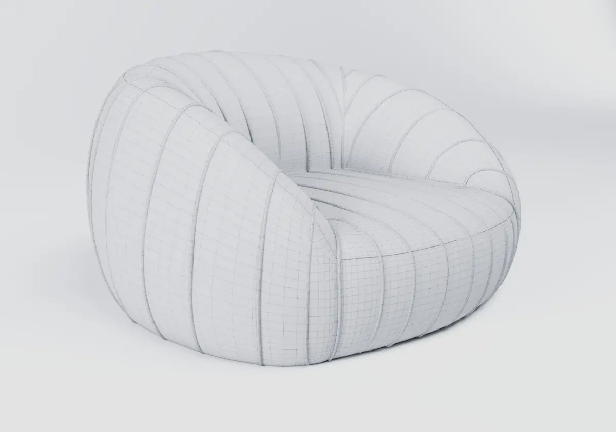 This detailed 3D model represents the Armchair Guida, a contemporary designer piece by Larissa Batista, known for its elegant organic form and luxurious upholstery. Perfect for interior visualizations, product rendering, or architectural scenes, this model is crafted to deliver high realism and clean geometry.