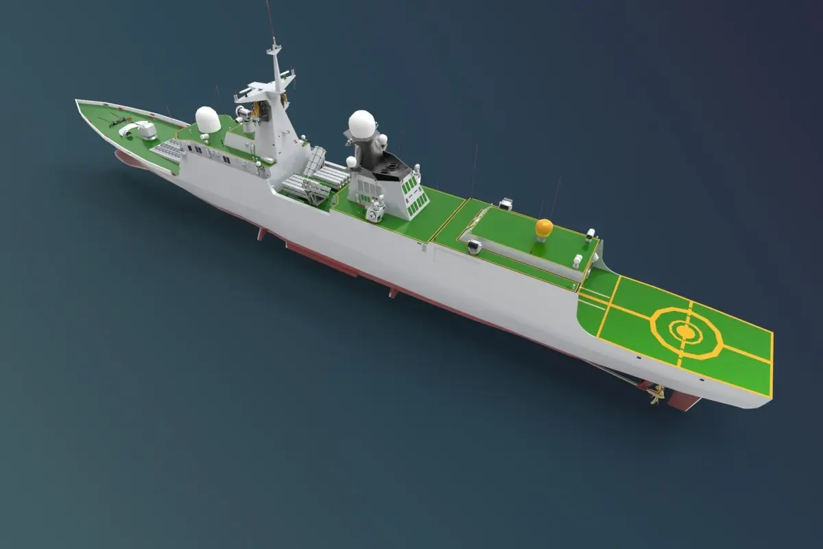 Type FrigateDisplacement 3,963 tonnes (full)[4]Length 134 m (440 ft)[4]Beam 16 m (52 ft)[4]Draught 5 m (16 ft)Propulsion CODAD, 4 × SEMT Peilstick 16 PA 6V 280 STC diesels, 20.7 MW (28,200 hp) total, 2 shafts[4]Speed 27 knots[4]Range 3,800 nautical miles (4,400 mi; 7,000 km) estimated at 18 kn (33 km/h; 21 mph)[4]Sensors andprocessing systems