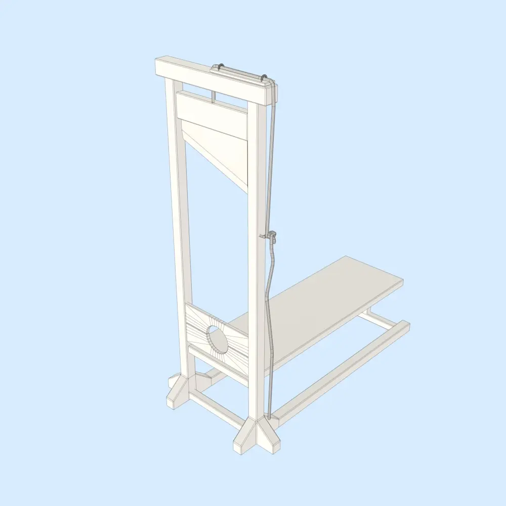 High Quality Low Poly Guillotine Model is modeled in Blender-3.6 and rendered with EEVEE Renderer. T