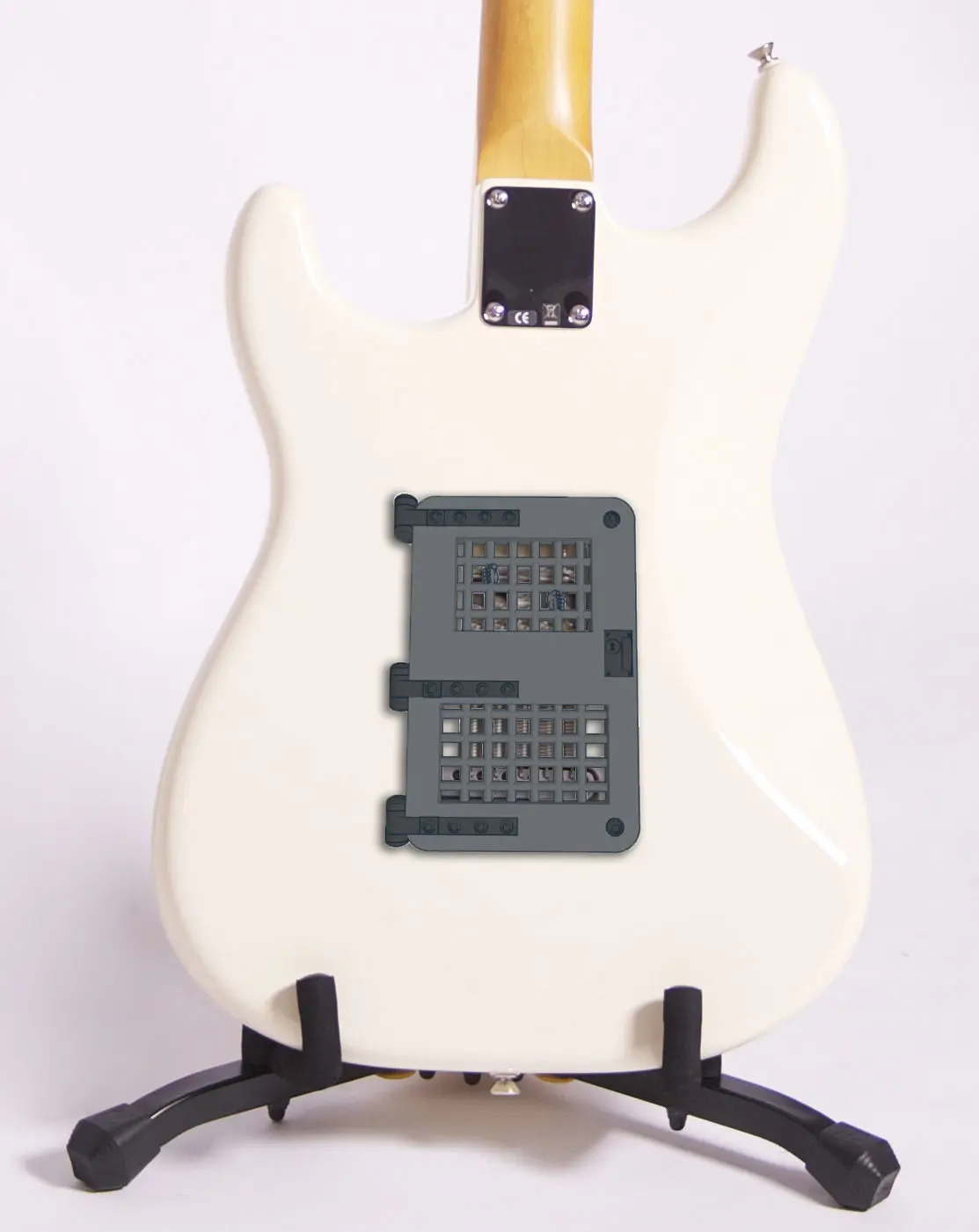 The Guitar Backplate Dungeon Door is perfect for the Electric Guitarist who wants to upgrade their guitar with a unique style. The back plate is a dungeon door design with bars and a pair of hands behind the door.
