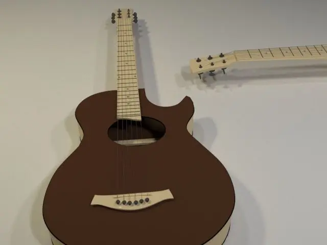 Guitar 3d model created in 3ds max 2018. It is a poly model.The guitar is a stringed musical instrument that is usually fretted and typically has six or twelve strings. It is usually held flat against the player's body and played by strumming or plucking the strings with the dominant hand, while simultaneously pressing selected strings against frets with the fingers of the opposite hand.