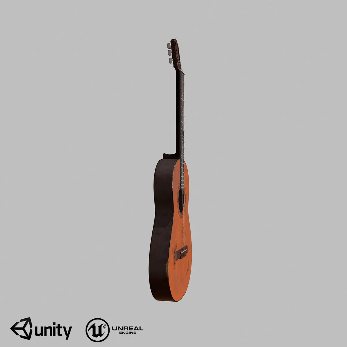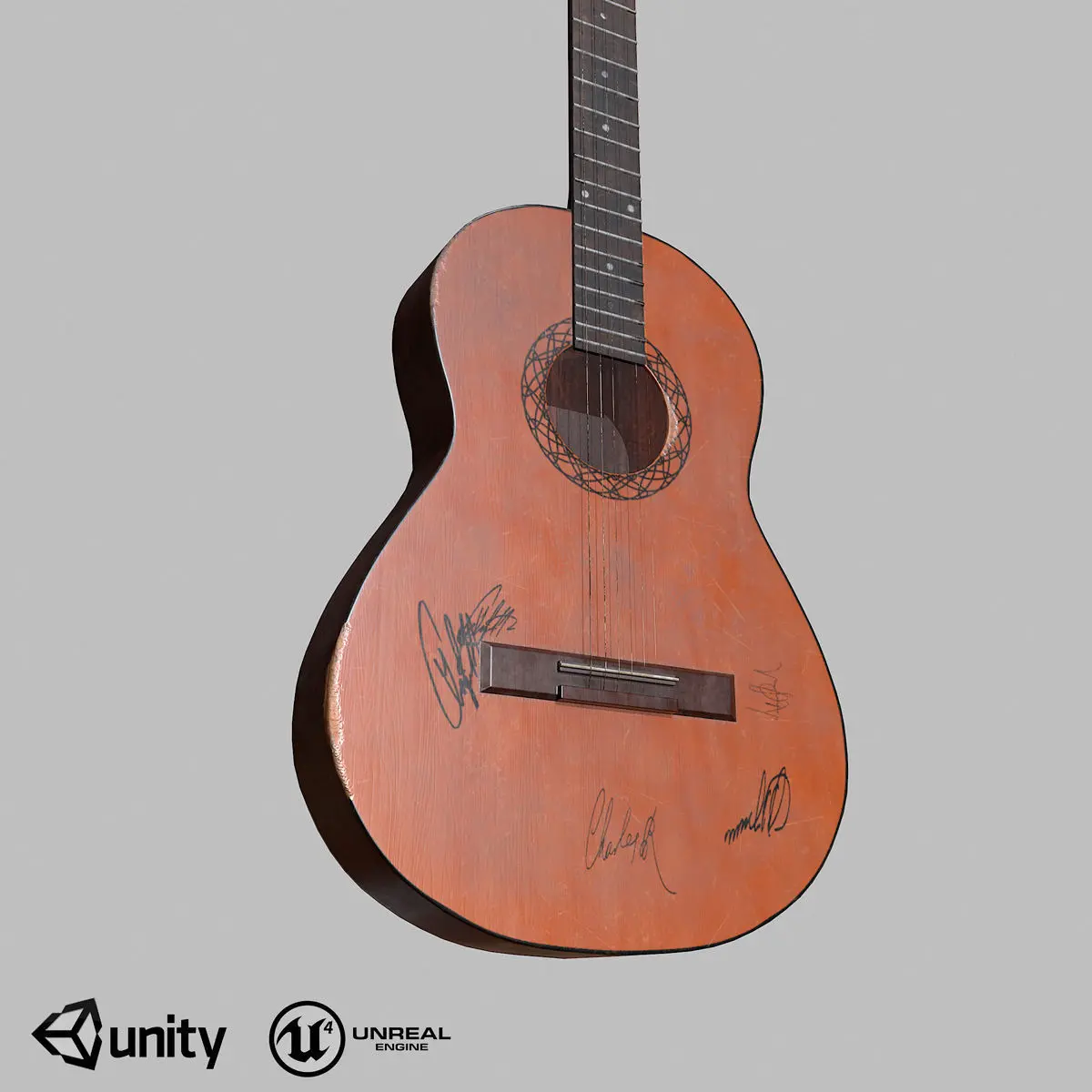 Low-poly 3d model Guiter with PBR Textures(Metallic, Roughness, AO - packed in the RGB channels) Metallic workflow(Albedo, Metallic, Normal, Roughness) Texture resolution: 4096x4096
