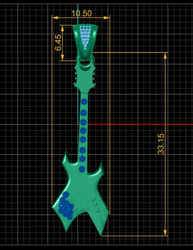 A unique guitar-shaped pendant crafted in radiant gold, featuring a detailed electric guitar design with embedded round-cut blue gemstones along the neck and body. This pendant combines the passion of music with fine jewelry craftsmanship, making it a perfect accessory for music lovers and fashion enthusiasts alike. The detailed strings, pickups, and hardware engravings add a realistic touch, while the sparkling gemstones provide a luxurious finish.