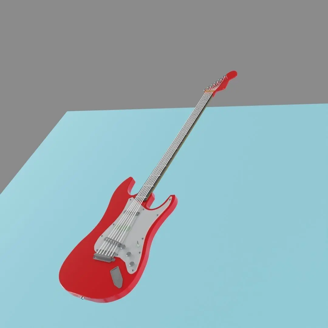 Bundle that contains 8 unique guitars and materials with them.Guitars 3 and 8 both use a wooden image texture.All models have triangulated polygons.Does not come with the backdrop, light and camera.The strings on all the guitars are a separate object, made up of bezier curves with a simple geometry to them, parented to the guitars.