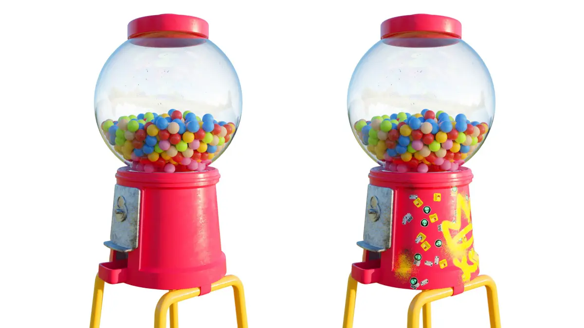 This is a Gumball Machine model. 4K Base Color, Roughness, Normal, and Metallic maps to reach the best visual quality for your creations. Clean topology and 100% made in Blender. You can download it in .BLEND, .FBX, .OBJ, MTL and .STL
