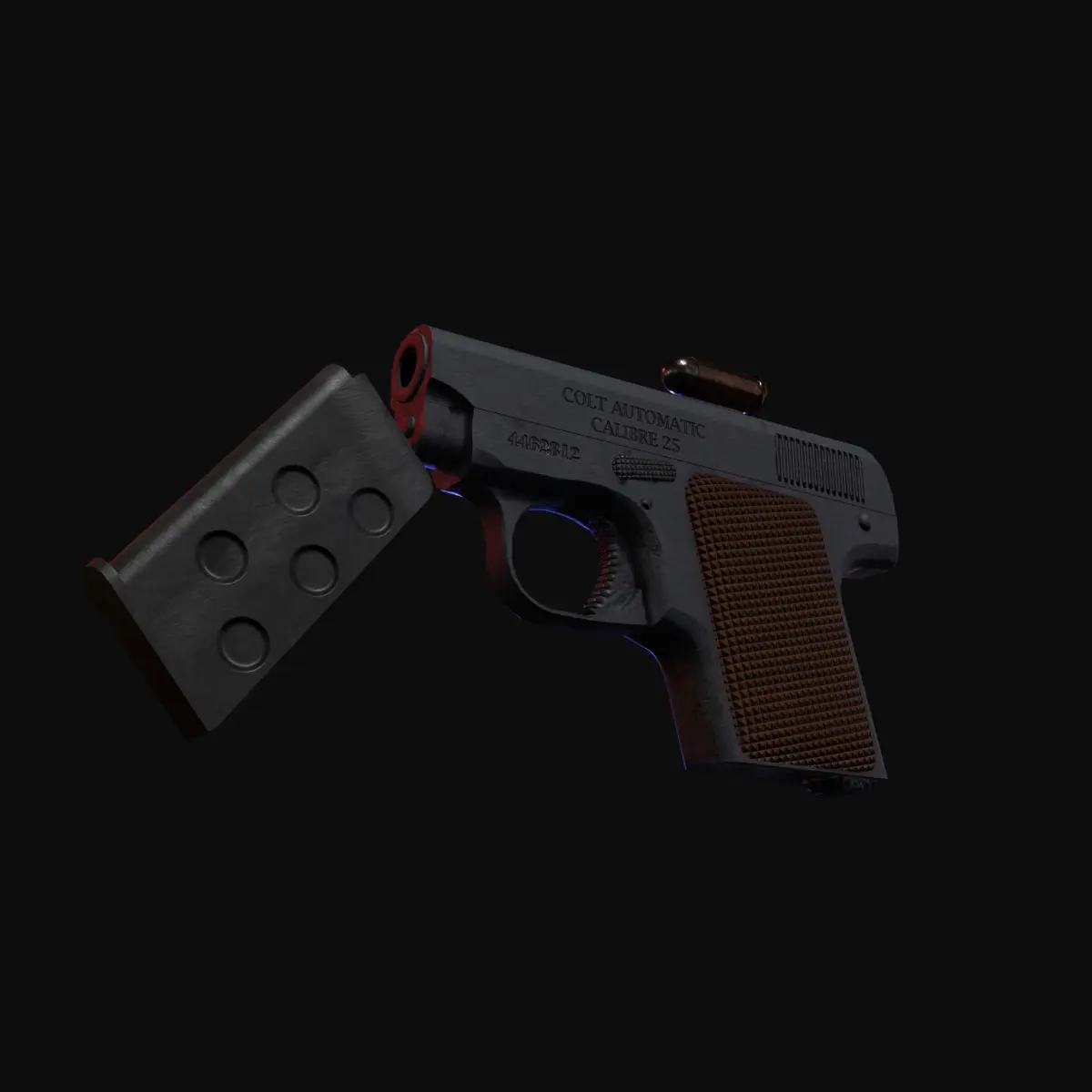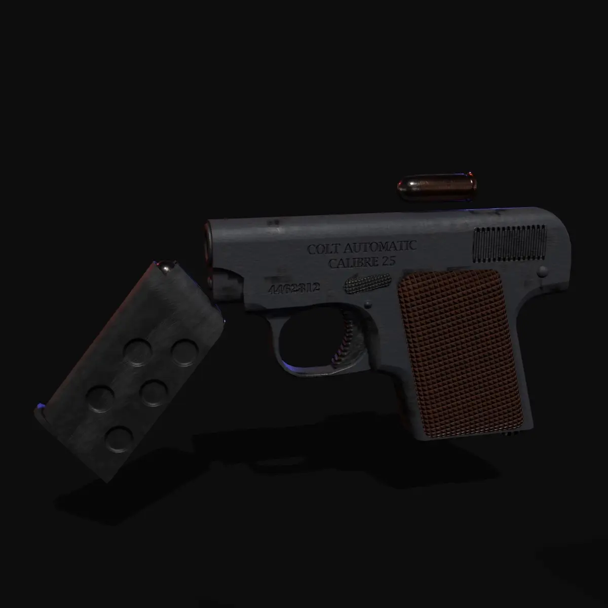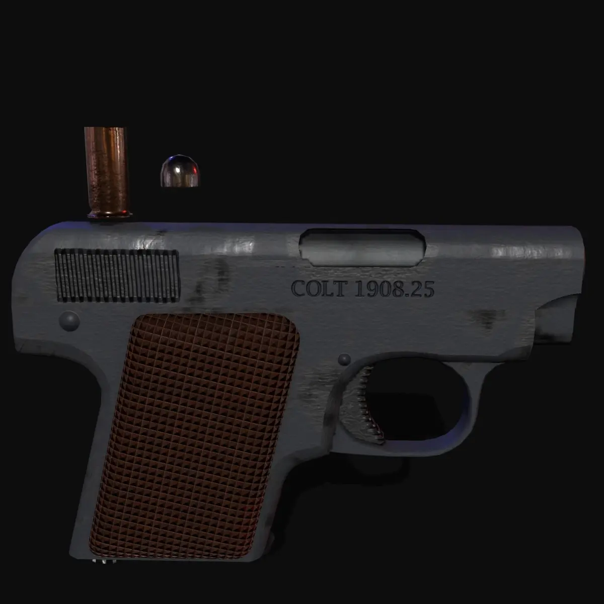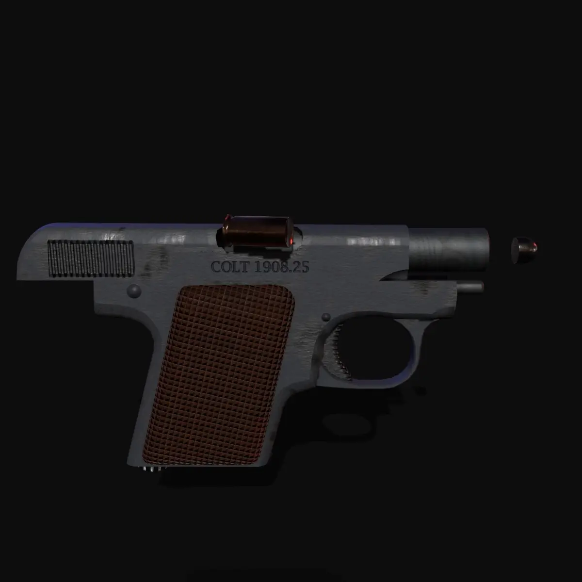 This model is not a complete replica of a real 1908 pattern pistol.The model has a simple grid, textures in PNG format, respectively, are intended for game projects.The model has various separate parts such as: 1- Shutter. 2- Trigger. 3- Magazine with cartridges. 4- Gun body. 5- Capsule. 6- Bullet.You can customize and animate this weapon however you like. The maximum texture quality is 2048.