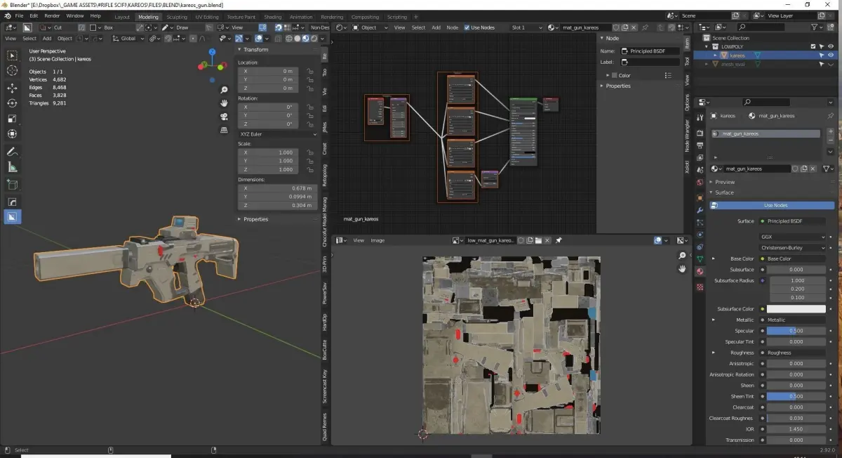 Kareos Gun Scifi 3D Model ready for VR/AR and games or other applications.