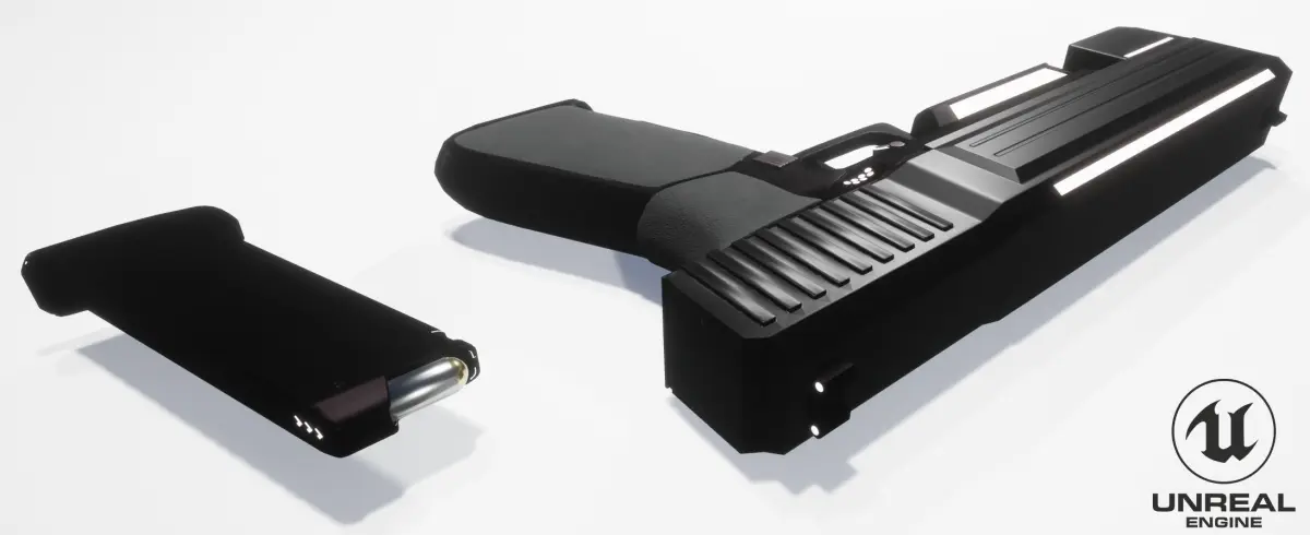 GUN Sci-Fi Low-poly 3D model Game Ready PBR Textures For Unreal Engine . Textures are 4096 x 4096 in size. Preview Render in Unreal Engin4 & Substance Painter.