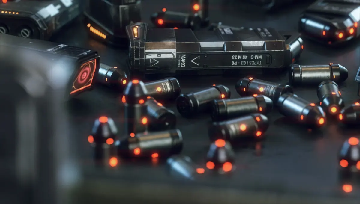 The handgun is animatable to a certain degree. The magazine is really fitting in the handle, the bullets fit in the magazine, the scope and underbarrel element could be detached, the sunblends of the scope are movable as well.FYI you may have to detach some elements in order to gain transform control in case you want to animate something.