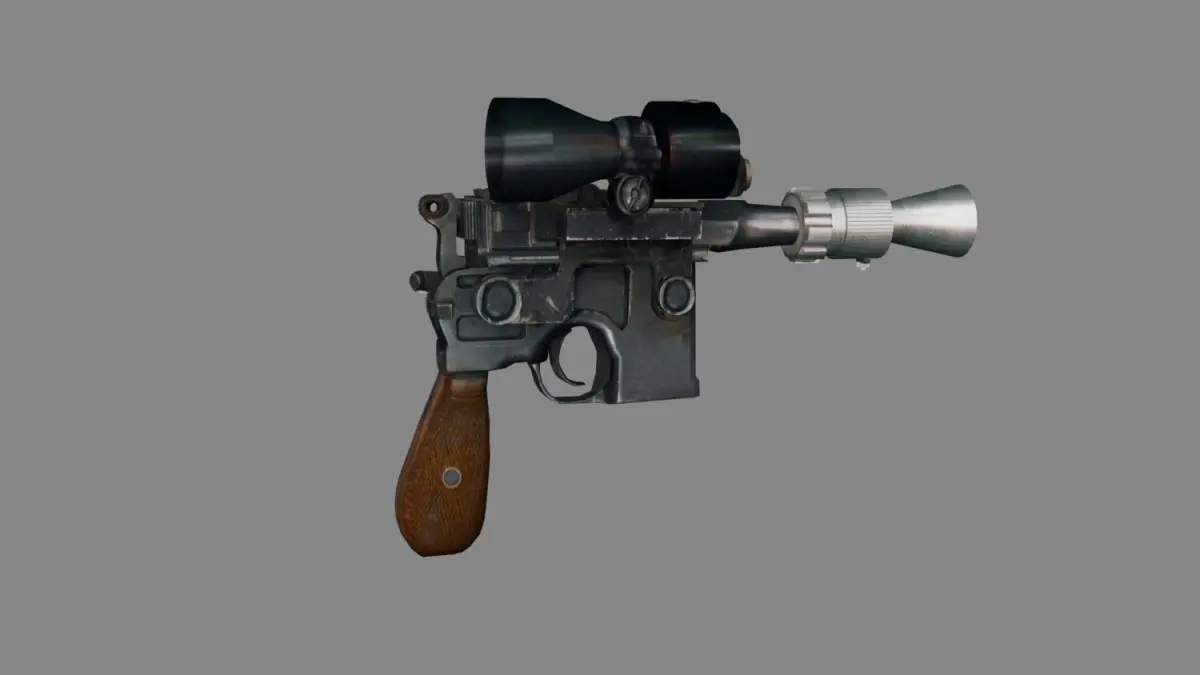 replica of a prop gun used in star wars movie. Its a modified broom stick Mauser pistol.