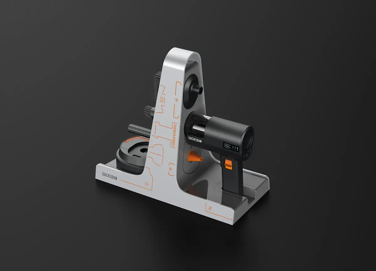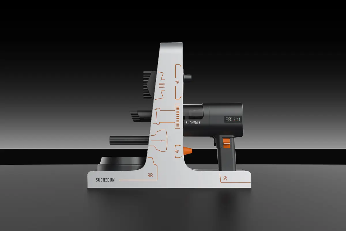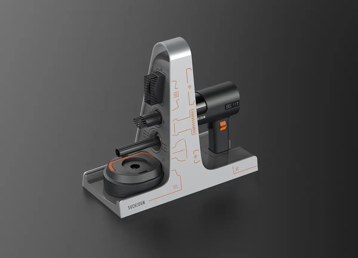 Miniature handheld blowers and vacuum cleanersGun style styling, battery compartment = magazine compartmentIncludes accessories and stand setIncludes charging base setHolder painting designEditable source filesAvailable for rendering Available for printing