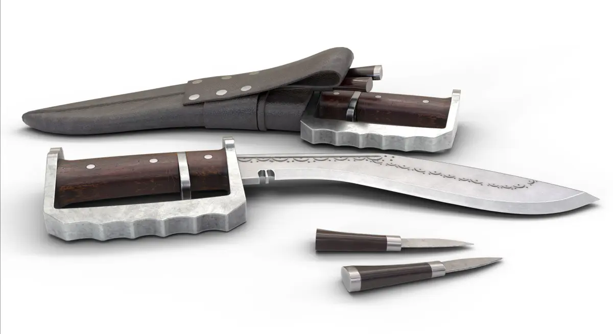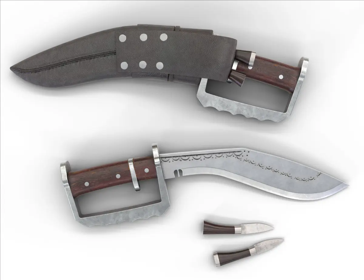 LP model of Vgurkha Anhola panawal Khukuri knife 10 with leather shelth and 2 additional knifes with high texture resolution. Feel free to use it in your project or or as an in-game asset.Can be used as game asset or render prop in your scene.