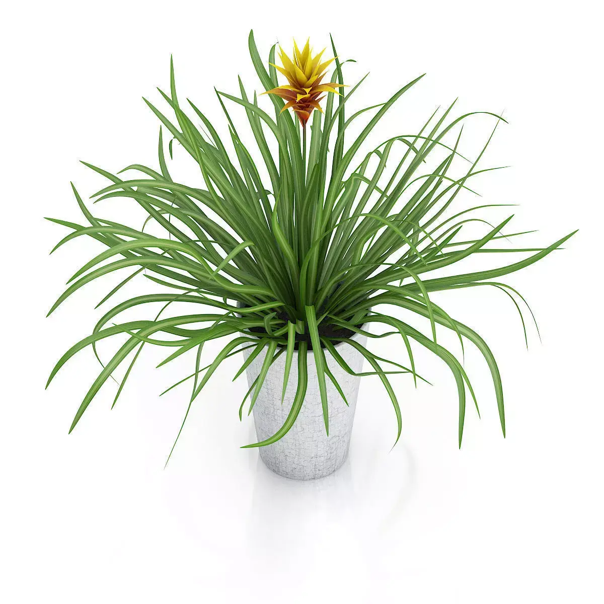 3D model of guzmania plant in light-grey round pot. Compatible with 3ds max 2010 or higher and many others.