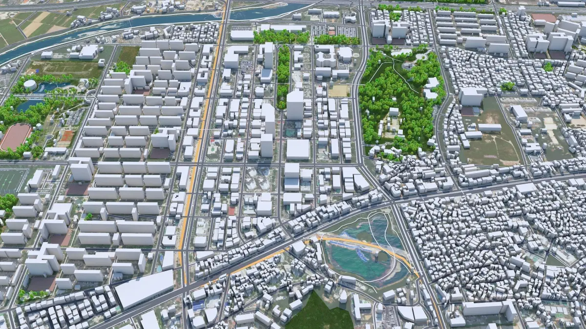 Accurate 3D city model and its surrounding area based on GIS data Year 2022