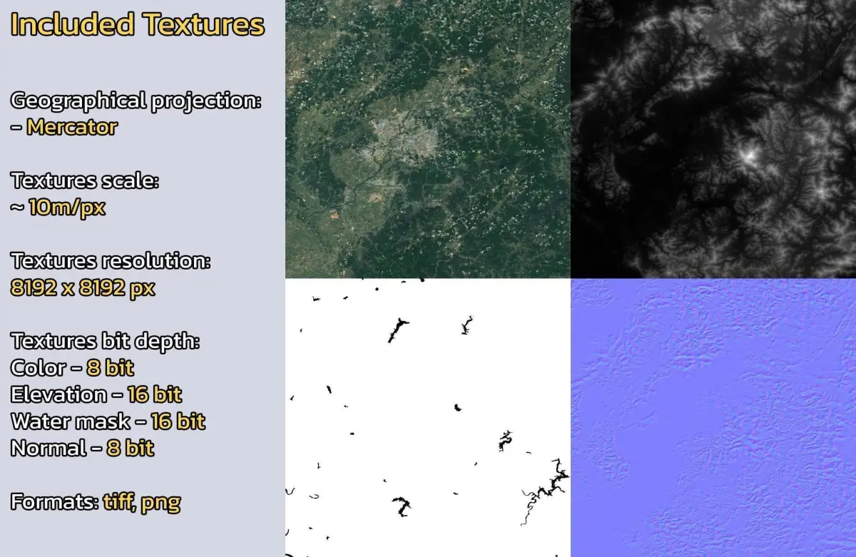 - Textures resolution: ~10m/px