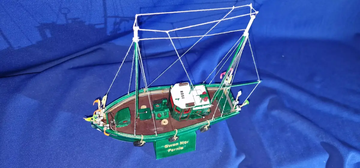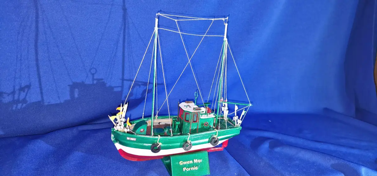 This is the Gwen Mor Pornic, a Breton fishing boat. When slicing, the printed parts should be enlarged from 100% to 1000%. This will give them dimensions of 18.52 cm in length, 10.75 cm in height, and 10.94 cm in width. The masts and fishing tackle are not included and should be made from wooden parts.The hull and deck should be printed in PLA. The other parts should be printed in resin.