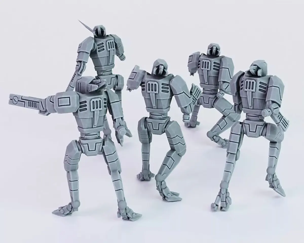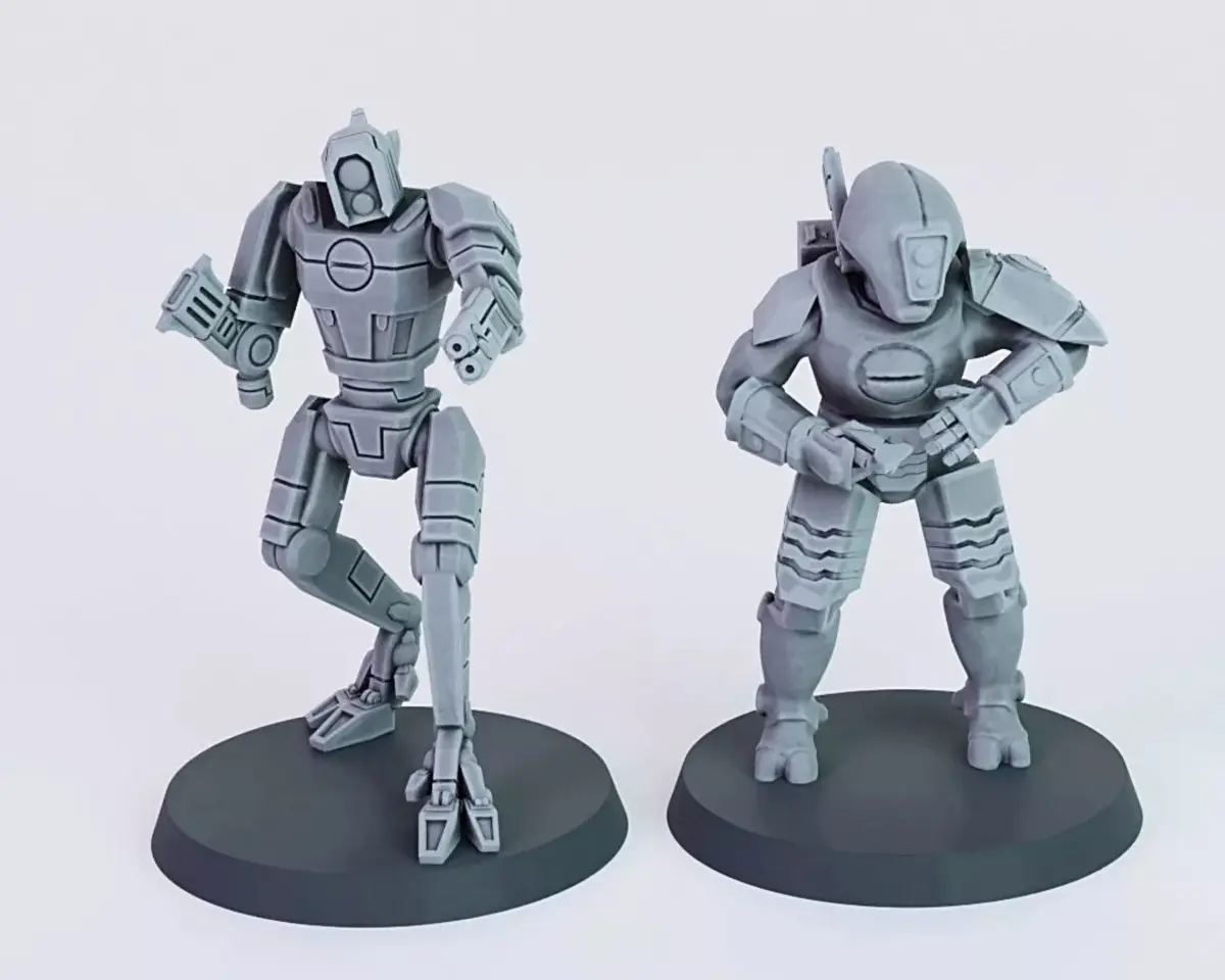 Included are five posed GX1 Combat Drones serving the Greater Good. They can be used to replace Carnivores.The Drones were modelled to fit onto 25mm to 32mm Bases and to be printed on resin printers.The Fire Warrior is not inlcuded and only shown for reference.