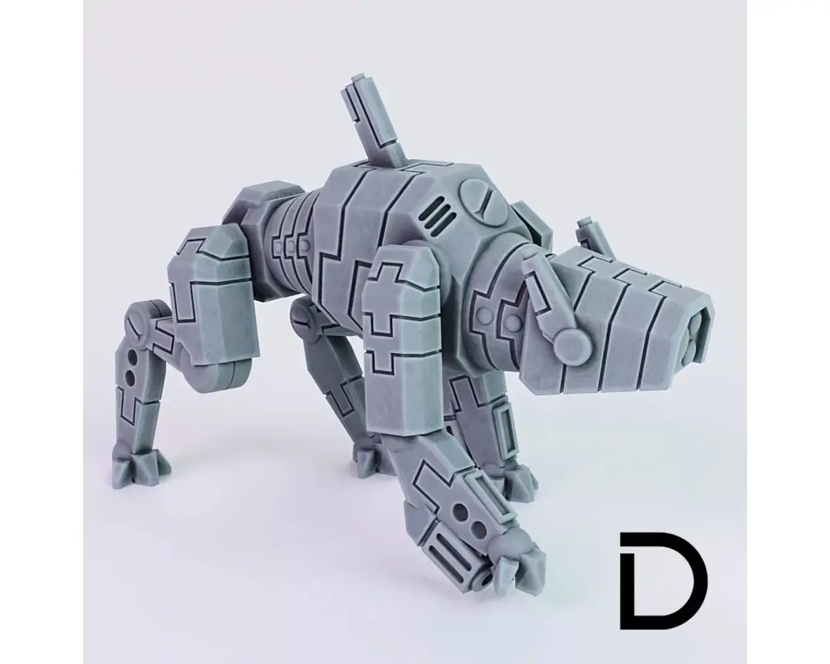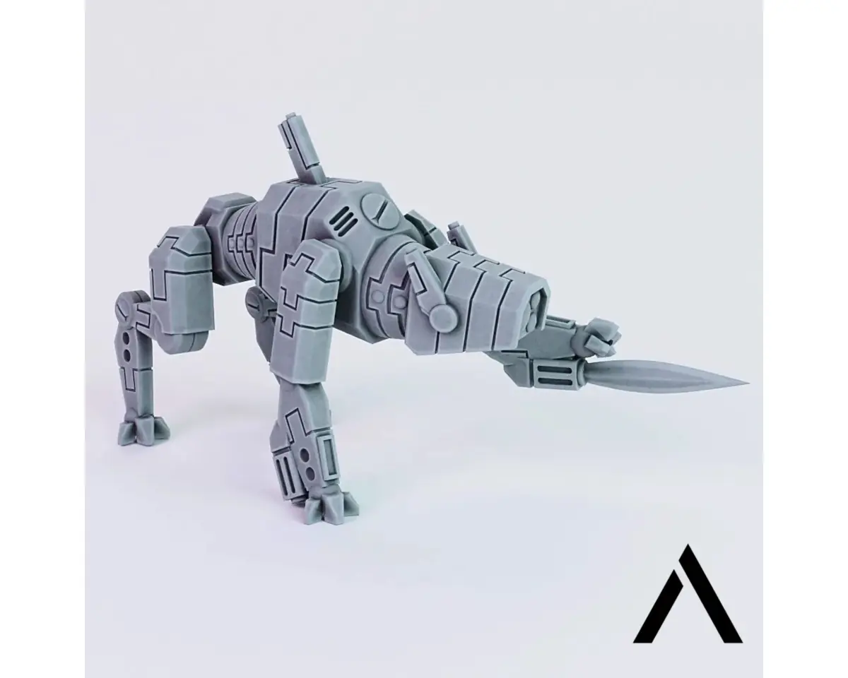 This set includes 4 posed Drone Hounds as proxies for other hounds for 28mm wargaming.The mdoels were designed to fit onto oval bases and to be printed with resin printers. The blades can be printed seperately with clear resin.