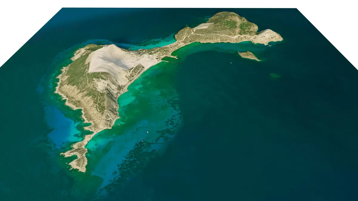 3d model landscape of Gyali Island, Dodecanese Islands, Aegean Islands, Kos, Greece.