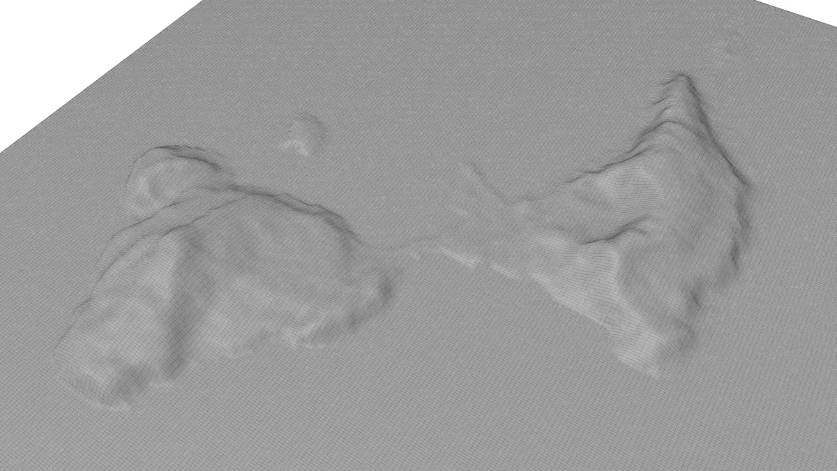 Gyali Island 3D model terrain. 3d model island of Gyali, Greece with its landscape of mountains, beaches and forests.