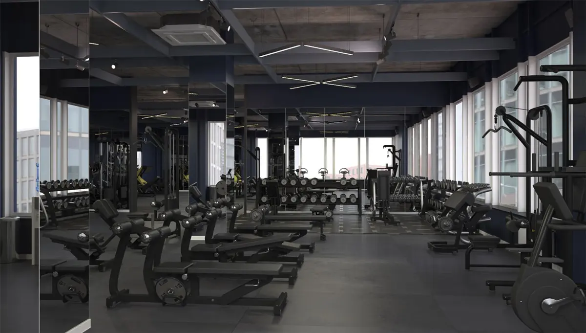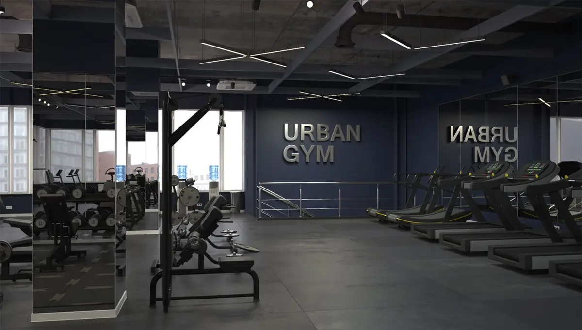 This is a realistic full scene of GYM with 23 uniqe exercise machines: