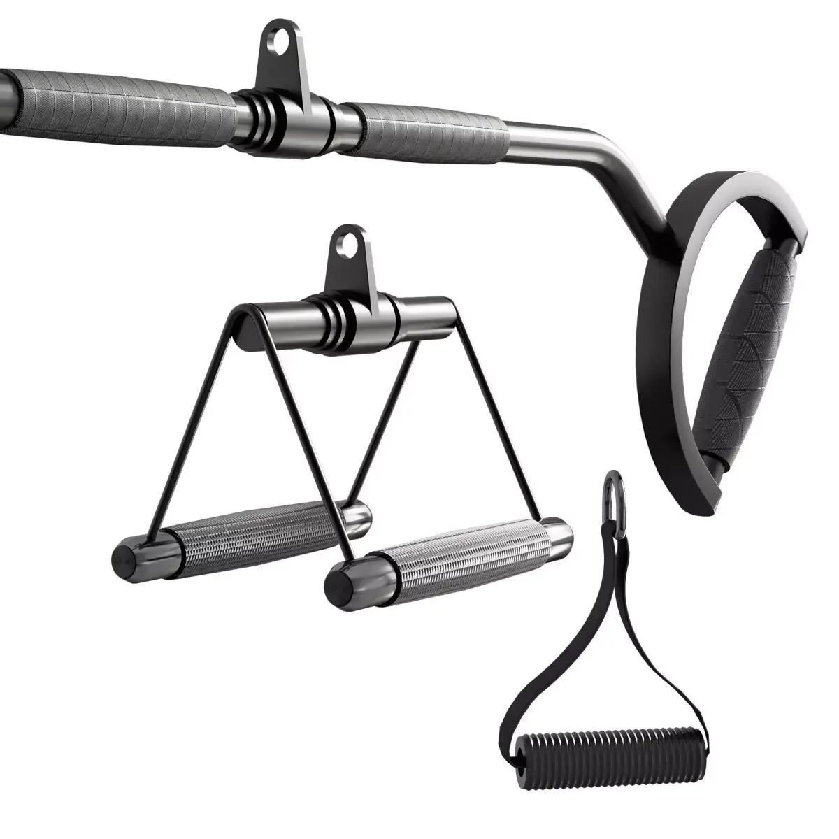 Detailed 3D model pack of gym cable machine attachments, perfect for fitness center, home gym, or sports equipment visualization.This collection includes a variety of accessories such as: