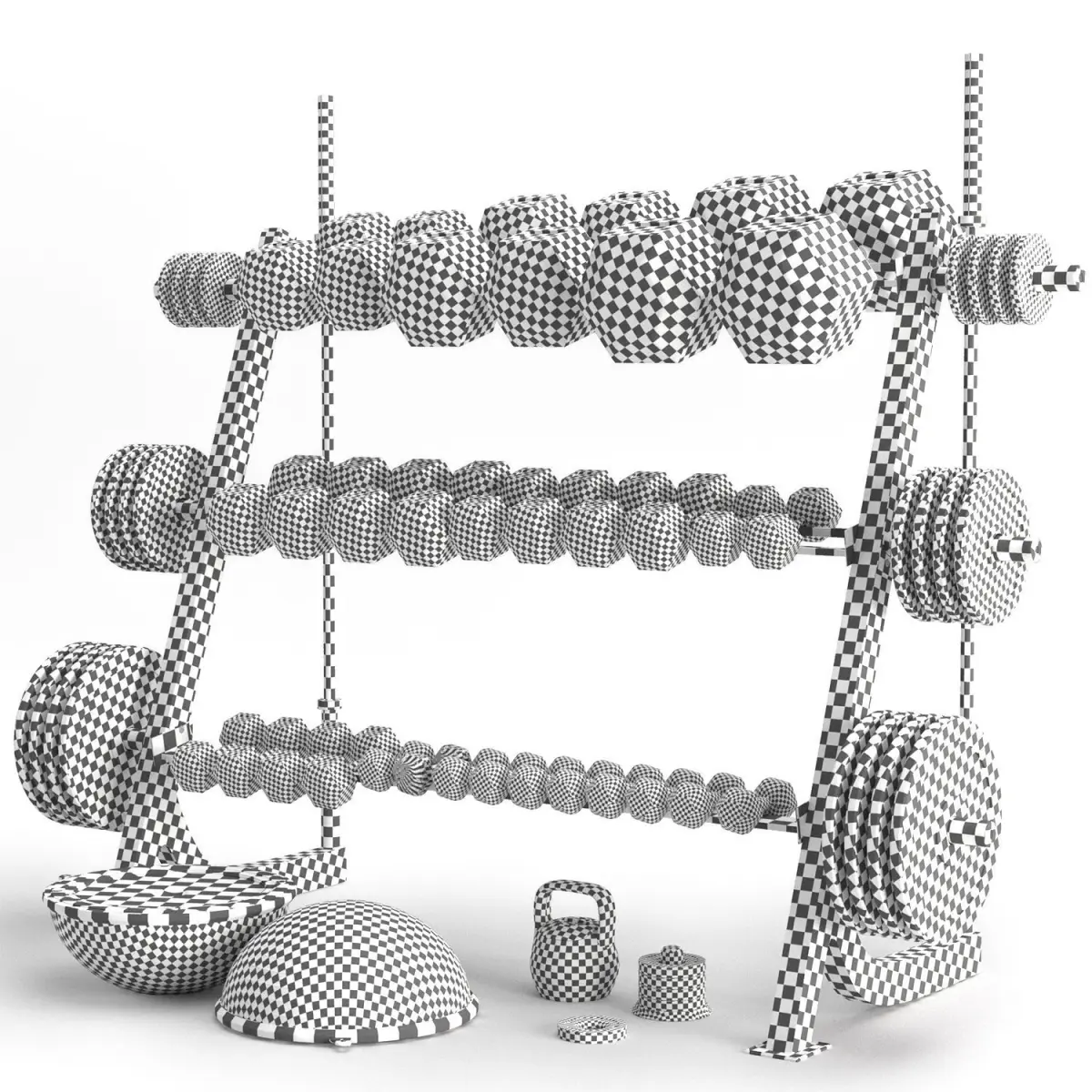 Name: gym_collectionVersion: 2015Preview: YesUnits: CentimetersDimension: 636.36 x 369.68 x 511.99Polys: 1 357 508XForm: YesModel Parts: 81Formats: 3Ds Max 2015, FBXMaterials: 2k pbr