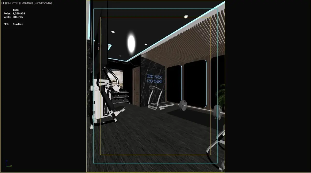 Let's take the time to look at this scene, you will see a gym with basic equipment including: treadmill, dumbbells, yoga mat, shoulder machine...Pursuit style is modern, luxury and sporty with the main pallet is black, shadow and gray.Materials used are mainly mirror, reflective material, metal, matte...Version 3Ds Max: 2022Version Corona: 7 HotfixPolygon: 1,569,908Time render: ~ 30 minPixel image: 1600x1200