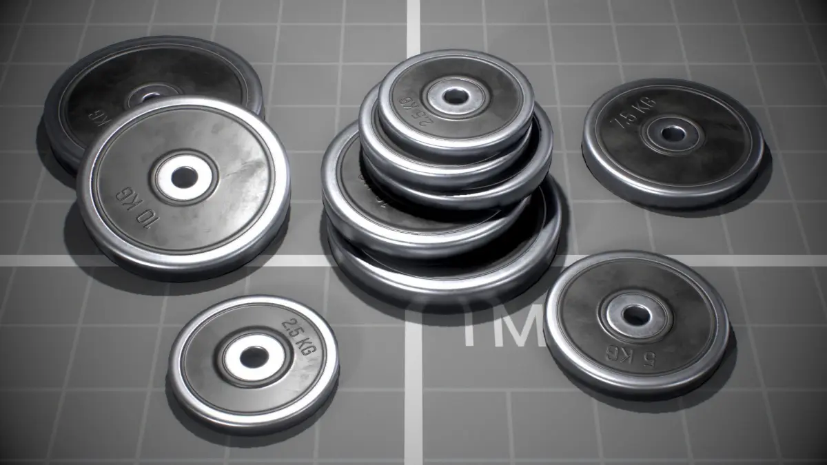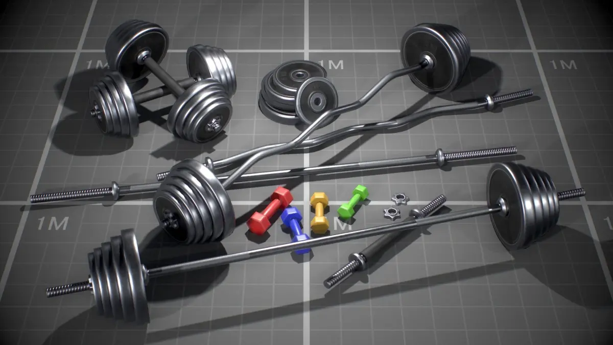 - 13 modular pieces of gym equipment , poly-count 2864 triangles .