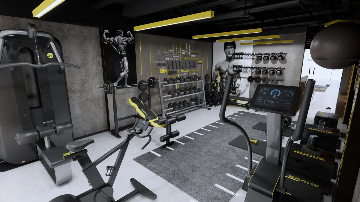 A design you can use for gymsWe created a more modern style by using dark and popular colors in the designs.Render images were taken with enscape rendering. It was designed in Sketchup program. Make sure to use the enscape rendering engine to render this quality image.Models in white belong to the enscape rendering engine.You can delete the whites and use the rest in different rendering engines.