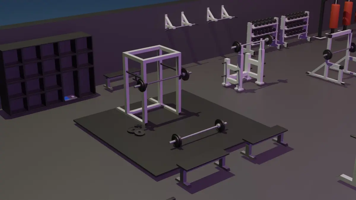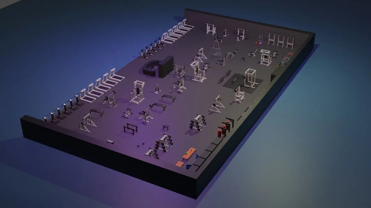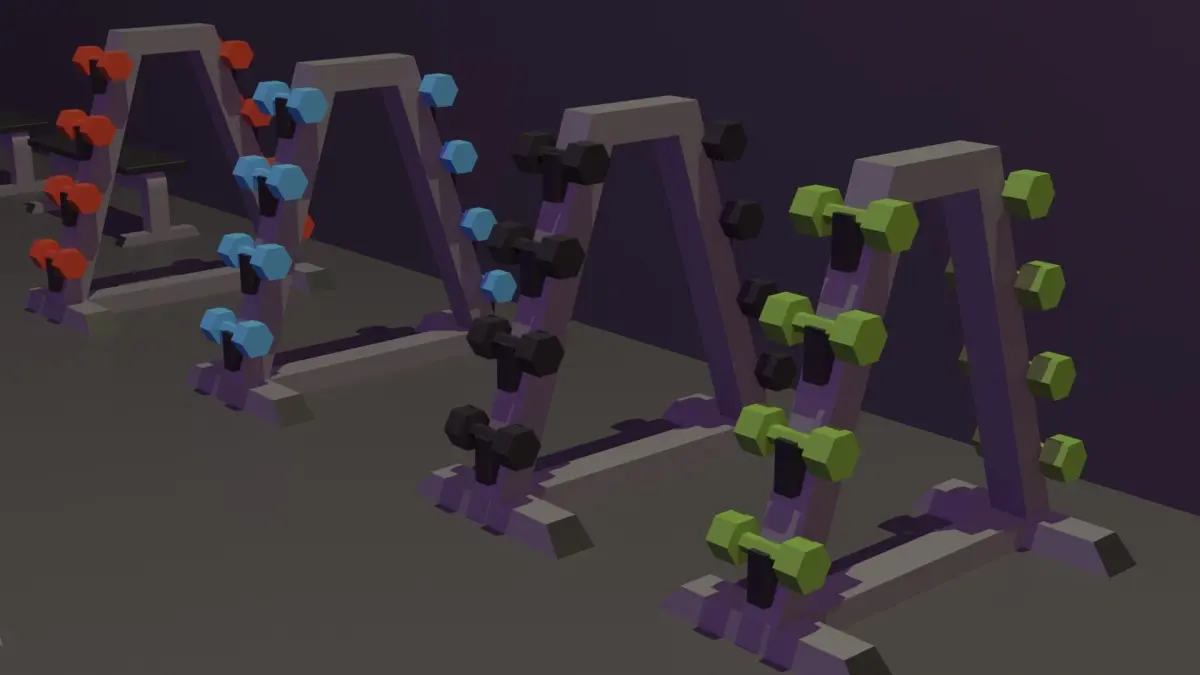 The package includes various gym equipment for exercise. With a low polygon count, it's ready for games. The color palette used for the texture.
