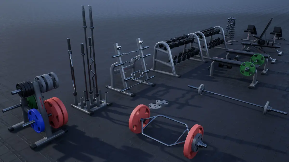 Low-poly PBR Gym Props PACK 01 models intended for game/realtime/background use.