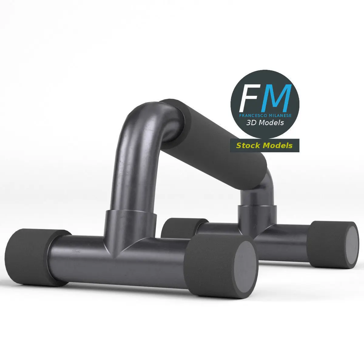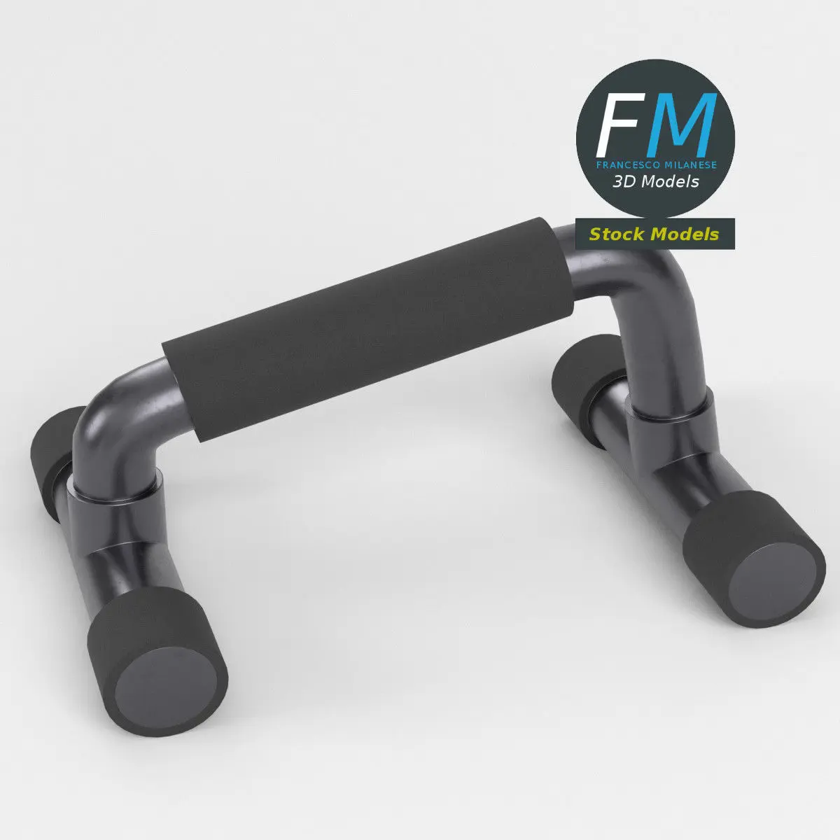Gym push-up bar 3D Model. Production-ready 3D Model, with PBR materials, textures, non overlapping UV Layout map provided in the package.Quads only geometries (no tris/ngons).Easily customizable: UV unwrapped geometries; UV Layout maps provided in the package as png with alpha images.Each Object, Material or Texture provided in the package has a unique, meaningful name.Made in Blender 3.6.1 LTS with Cycles Principled BSDF PBR shader with textures included (Eevee compatible), then exported to OBJ and FBX; materials and textures made in Substance Painter (Adobe 3D Painter), exported for PBR, Cycles, V-Ray, Unity, Unreal.PROMO IMAGES: the first image has been rendered in Cycles for Blender; in particular, you can find 11+ promo images in this description: