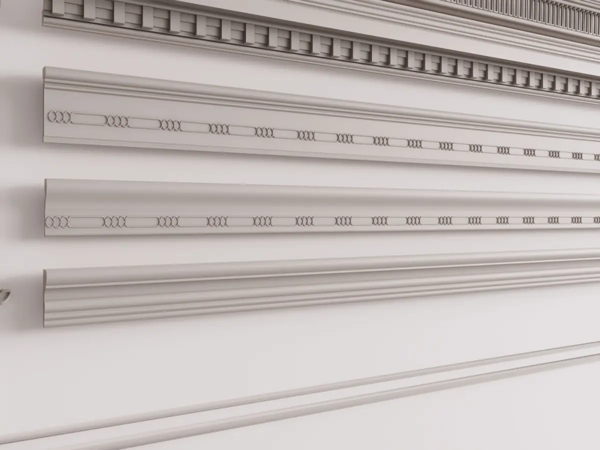 Product OverviewTwo-tier decorative molding patterns: Upper tier features Baroque acanthus scrolls and floral carvings, lower tier showcases geometric motifs (Material: Plaster/PU/Solid wood. Scale 1:10). Solutions for crown, dado and frame applications.