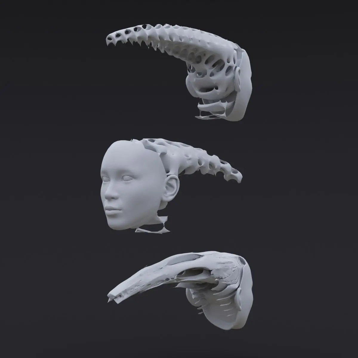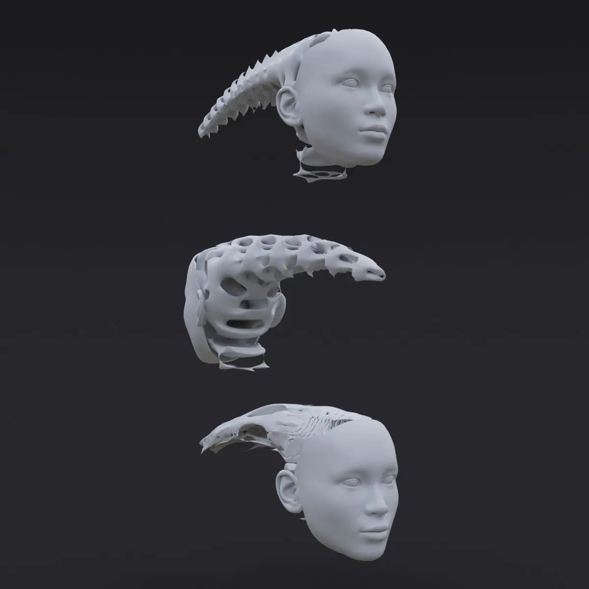 Female head made in Houdini FX constructed volumetrically using the gyroid formula.