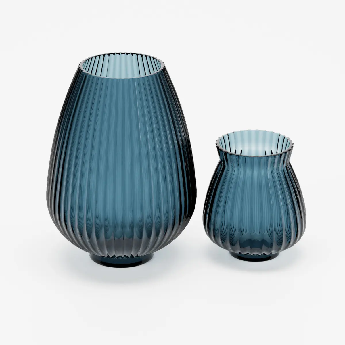 Large glass vase with fluted surface. Inner diameter at top 4 3/4 in., height 12 in.Composition - Glass 100%