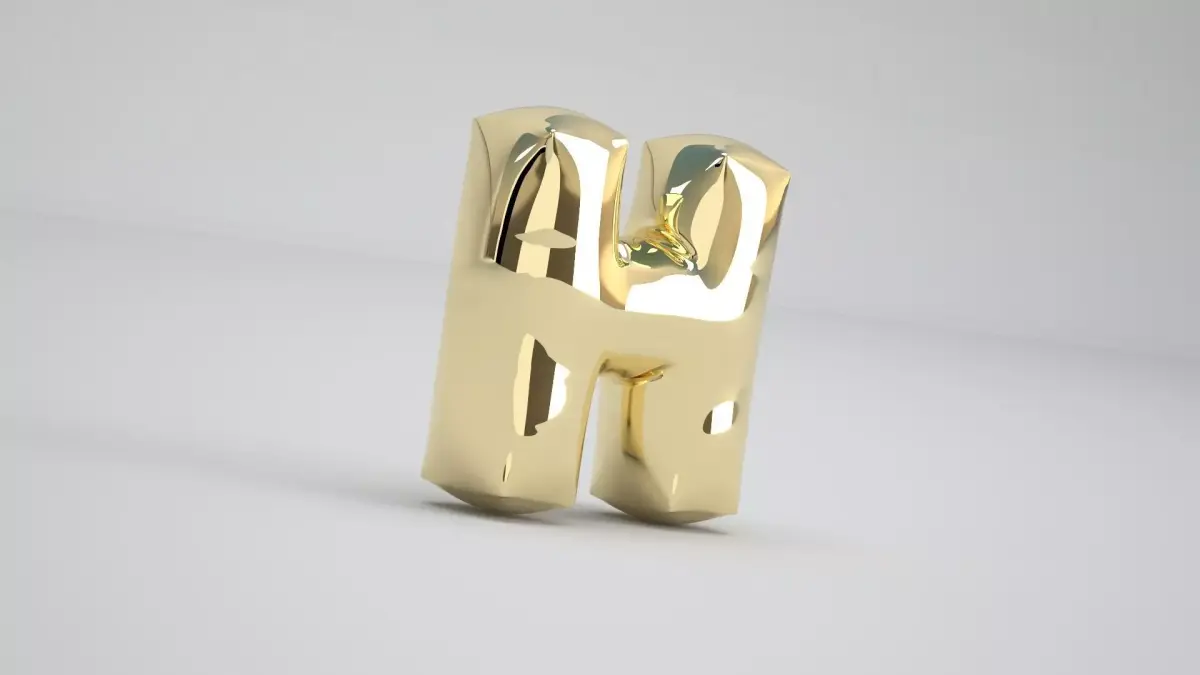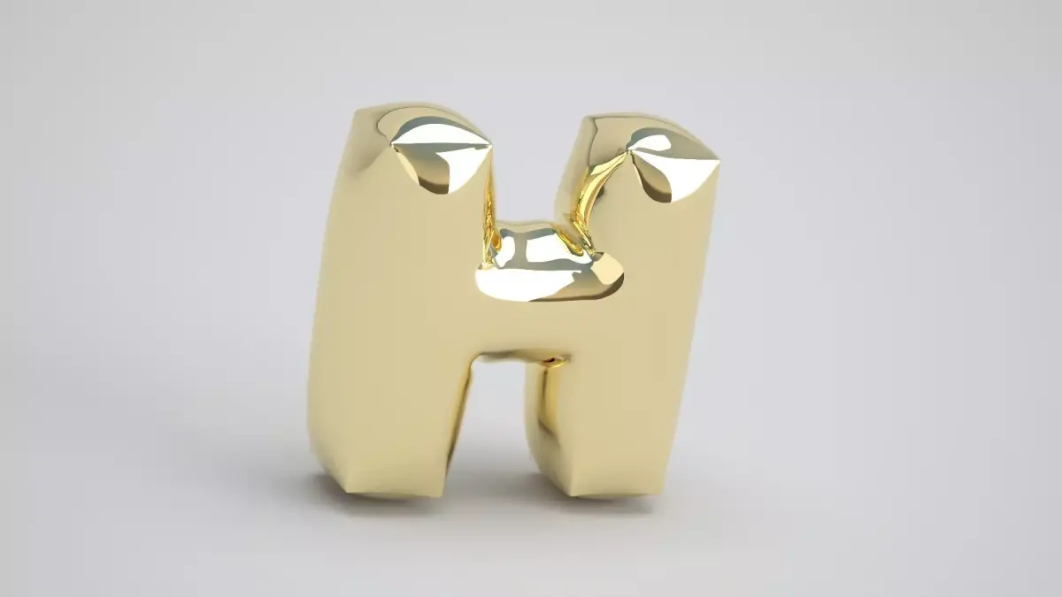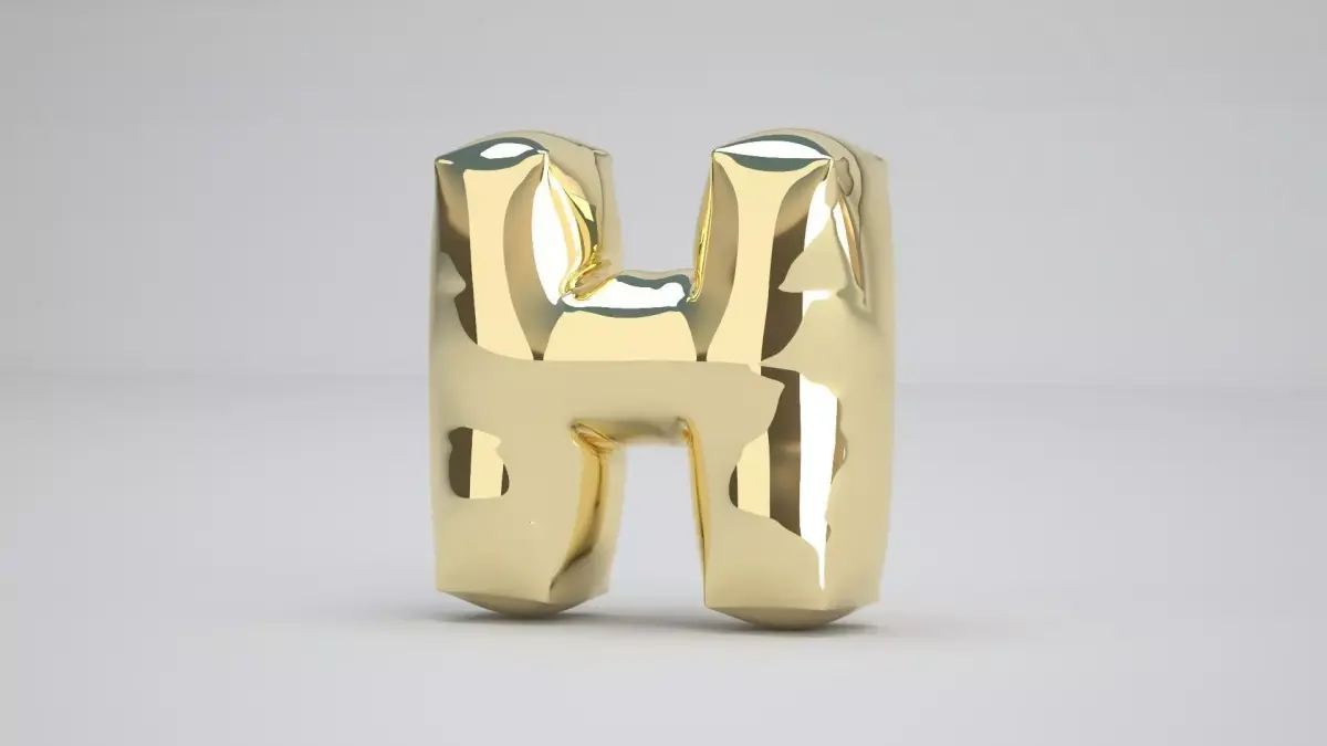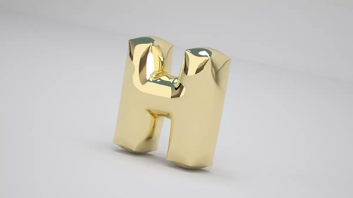Realistic 3D Model OF Balloon H Alphabet Gold